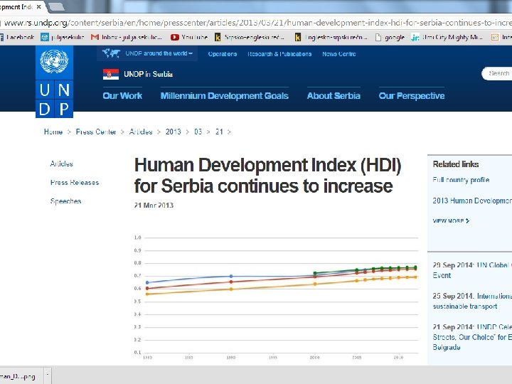 HDI - agregatni pokazatelj koji izražava dostignuća jedne zemlje u 3 osnovne dimenzije razvoja Dug i zdrav život • životni vek se meri očekivanom dužinom života živorođene dece Znanje • pokazateljima rezultata u sferi obrazovanja: • stopa pismenosti odraslih i stopa upisanih u škole i na fakultete Pristojan životni standard • meren društvenim proizvodom (GDP) po stanovniku u USD