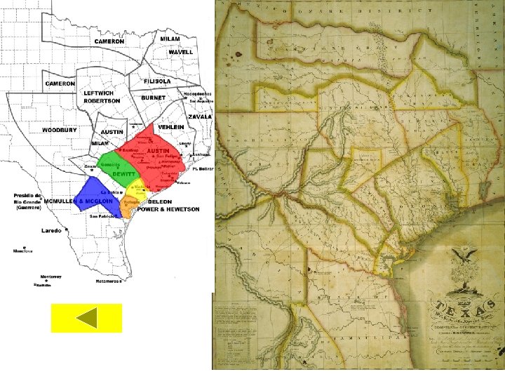 Major Empresario Grants Empresario Location Capital Stephen F. Austin, Father of Texas Between the Colorado and Brazos Rivers San Felipe de Austin West of Austin’s 1 st Colony Problems Successes Drought Tonkawa & Kawakawa Indians Lively shipwrecked Disputes over boundaries Mexican gov’t revoked right to settle Convinced Mexican gov’t to let him settle Father of TX – 1 st colony of Americans Settled nearly 300 families Gonzales Native American Raids Settled 166 families 2 nd in number to Austin South of De Witt along the Guadalupe. Near the coast Victoria Native American Raids Forced to leave TX because of anti. Mexican sentiments Did a lot to promote the cattle industry in Texas Victoria important center for trade between Mexico and Texas Refugio Prejudice against Irish Native American Raids (Irish Empresarios) South of De Leon along the Gulf Coast Mainly Irish settlers Refugio was built on the site of an old Spanish Mission Mc. Mullen and Mc. Gloin Along the Gulf Coast San Patricio Prejudice against Irish Mainly Irish Settlers (American Empresario) Green De. Witt (American Empresario) Martin De Leon (Mexican Empresario) Power and Hewetson (Irish Empresarios)