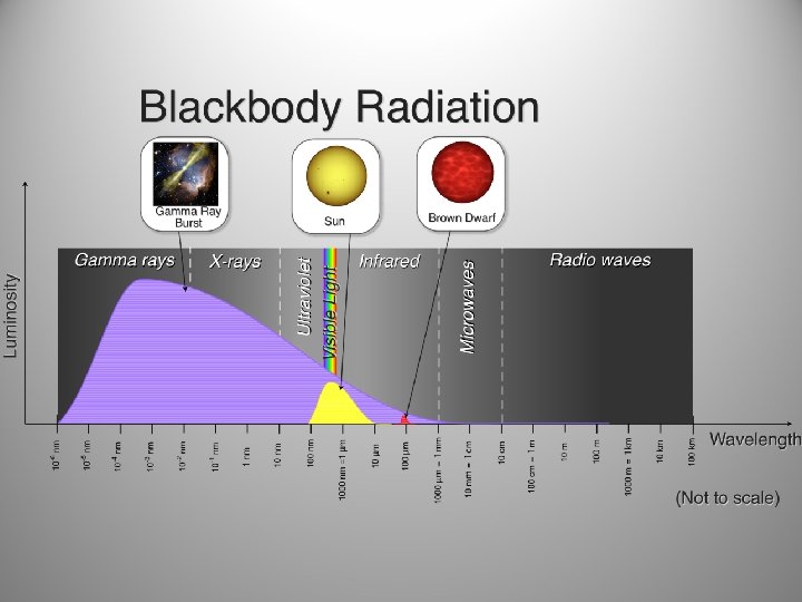 Verschuivingswet van Wien • De maximale intensiteit van het licht is gerelateerd aan de temperatuur: Temperatuur (K) = constant van Wien (K m) / piekgolflengte (m) T= b λmax (b = 0. 002898 m. K)