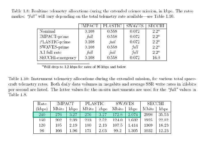 Extended Mission Strategy • Space weather beacon telemetry will be unaffected. – SECCHI SWx telemetry will not be stored on the SSR. • Spacecraft housekeeping rates will drop proportionally to the overall rate. • Instruments will only put housekeeping data in the realtime stream, with science data written to the SSR. – SECCHI already does this. The SECCHI housekeeping rate will drop from the current 3. 6 kbps to 2. 2 kbps. This will drop again to 1. 2 kbps when the overall rate drops to 96 kbps. – Optional realtime modes for special instrument operations • All instruments, including the in situ instruments, will lower their science rates.