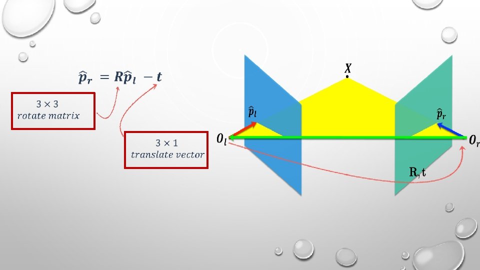 q If we assume that the camera’s are calibrated, then the points of the two images are normalized coordinates, that is, each is given with respect to it’s camera’s coordinate frame. q Assume we know, how to rotate and translate camera reference frame 1 to get to camera reference frame 2.
