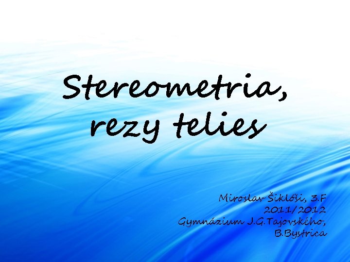 Stereometria, rezy telies Miroslav Šiklóši, 3. F 2011/2012 Gymnázium J. G. Tajovského, B. Bystrica