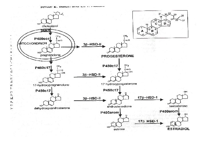 • Cytoplasm – Conversion of P 5 to progesterone (P 4) • C-21 steroids – Conversion of progestigens to androgens • C-21 steroids to C-19 steroids – Conversion of androgens to estrogens • C-19 steroids to C-18 steroids • Armatization of the sterol ring