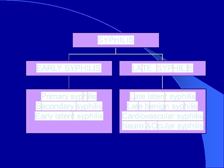 Investigations · · · 1. Dark field microscopy 2. RPR card test 3. VDRL slide test 4. TPHA assay 5. FTA – ABS