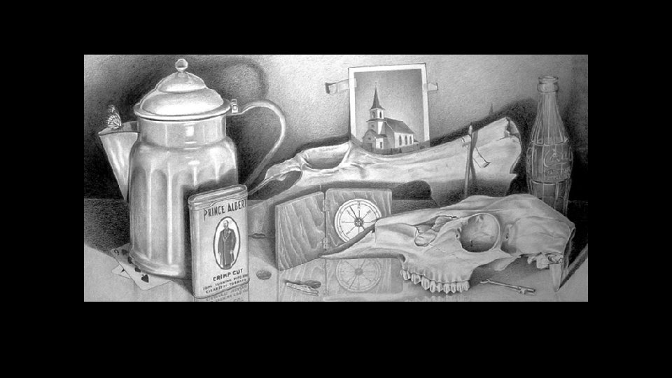 STILL LIFE DRILL: GET AND IPAD; TAKE OUT YOUR OBJECTS. Objective: You will learn arrangement techniques in order to make an effective still life composition. If you want to get objects now- you will need 6+. LOOK UP ANSWERS ON POWER POINT. 1. 2. 3. 4. 5. 6. 7. WHAT IS A STILL LIFE? Where did it originate? What is ‘nature morte’? What is vanitas? List some symbolism: What makes a good still life? What make a bad still life? What does overlapping do to an artwork?