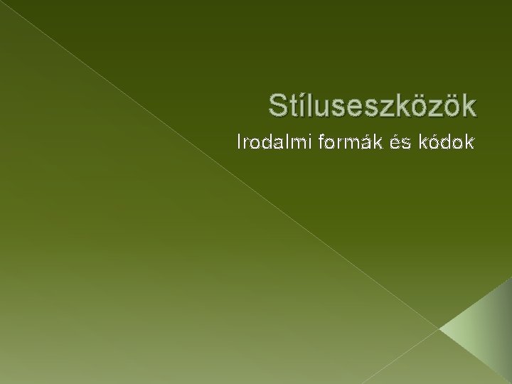 Stíluseszközök Irodalmi formák és kódok