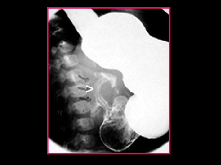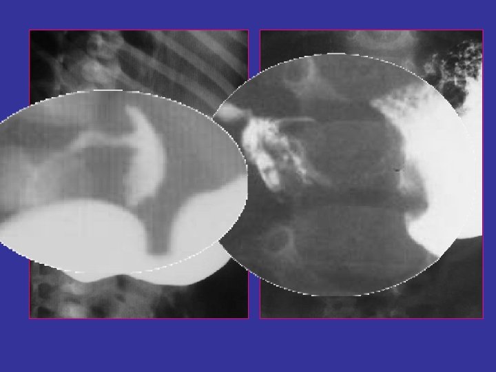 TOGD • N’est pas systématique : - symptomatologie atypique - échographie non concluante • Signes indirects : - dilatation et stase gastrique - estomac de lutte - retard de passage transpylorique • Signes directs ( pathognomoniques) : - défilé pylorique - image en parenthèses