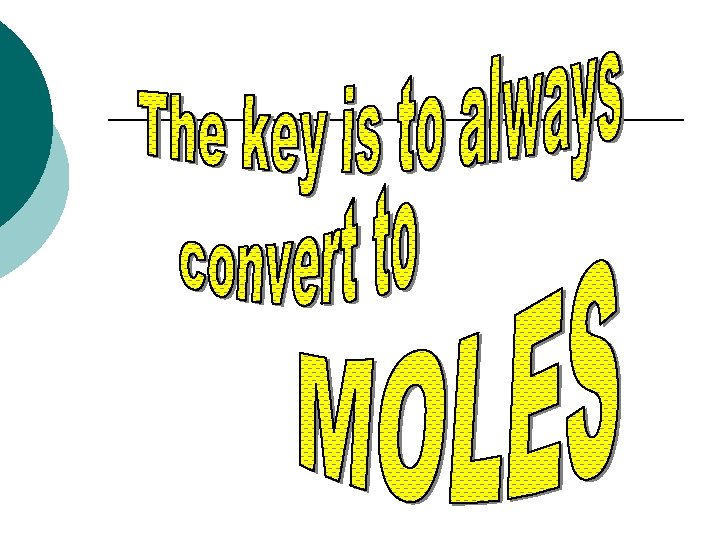 Your Path to Success! Convert From… Convert to Moles “Molar Math” Set up particles Mole ratio 6. 02 X 1023 mass Molar mass Gas volume 22. 4 Liters Convert to …. 6. 02 X 1023 particles Molar mass Moles mass Cross multiply to find moles 22. 4 Liters Gas volume