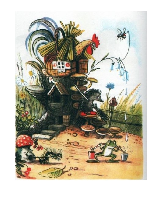 Stojí pníček, na pníčku – zámoček. A v zámočku žijú: muška, žabka, ježko a kohútik Zlatý hrebienok. Vybrali sa zvieratká do hory natrhať kvety, nazbierať huby, drevo, jahody.