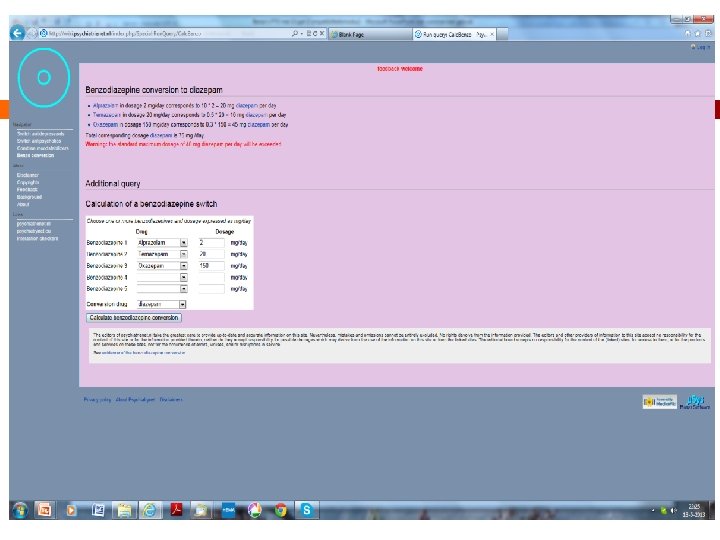 Handige sites http: //benzoschema. knmp. nl/benzos_pt http: //wiki. psychiatrienet. nl/index. php/Main_Page https: //www. medsys. nl/federatie/slaapstoornissen/index. html http: //www. jellinek. nl