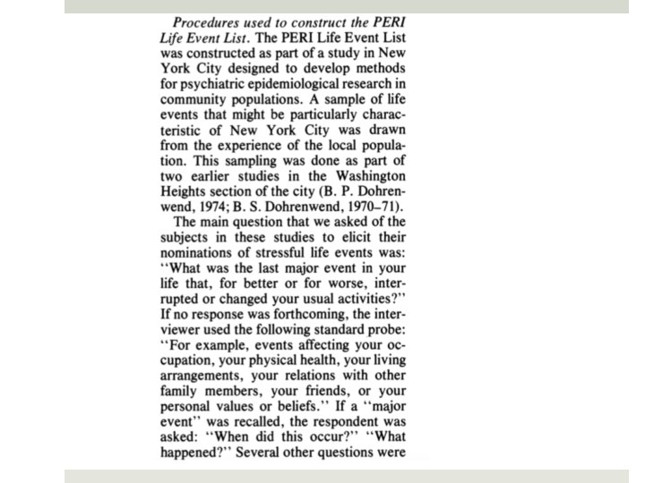Il modello di Dohrenwend Importante per i seguenti aspetti (nasce in ambito epidemiologico) 1)sposta l’accento dell’eziologia dalle caratteristiche individuali alle caratteristiche di alcuni gruppi sociali