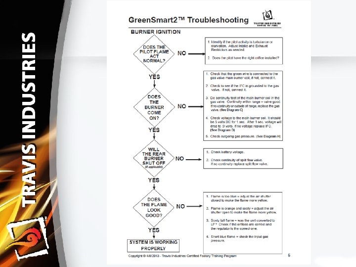 Green. Smart ‐ Lineage Ø 2009 Green. Smart 1 was introduced into all Travis Industries Gas Burning appliances Ø 2012 Green. Smart 2 was introduced as a new improved version of GS 1 Ø In June of 2012 it was noticed the performance of GS 1 & GS 2 wasn’t as good as the past. Ø It was discovered the manufacture of the GS system reduced the spark amptitude from 158 volts to 145 volts § The lowering of voltage by the vendor creates unforeseen reaction to the system as tested What did Travis Industries do?