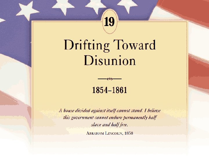– Evidence the Constitution favored the South… • It's the Supreme Court that officially interprets the Constitution and they'd just said it favored the South in the Dred Scott decision. • The 5 th Amendment said Congress could not take away property, in this case, slaves. • The South and slavery had the North in a "Catch-22" situation… – It could be argued that slavery was in the Constitution by way of the Three-Fifths Compromise. – It could be argued slavery was not in the Constitution since the word “slavery” indeed never was present, but using this argument, the 10 th Amendment said anything not in the Constitution is left up to the states, and the Southern states