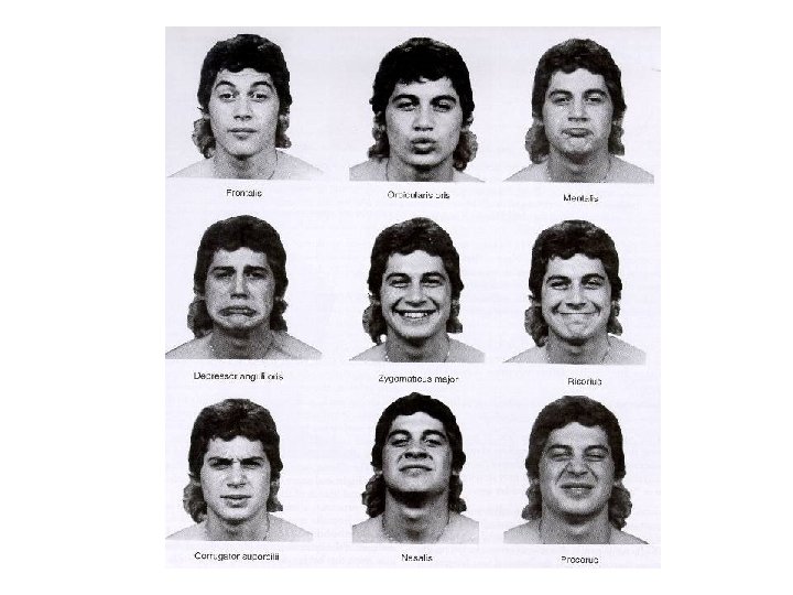 Muscles of Facial Expression * • Epicranius frontalis m. wrinkles the forehead • Orbicularis oculi m. closes the eye • Nasalis m. - widens the nostrils • Risorius m. - draws angle of mouth laterally • Orbicularis oris m. “pucker” muscle Plate 22