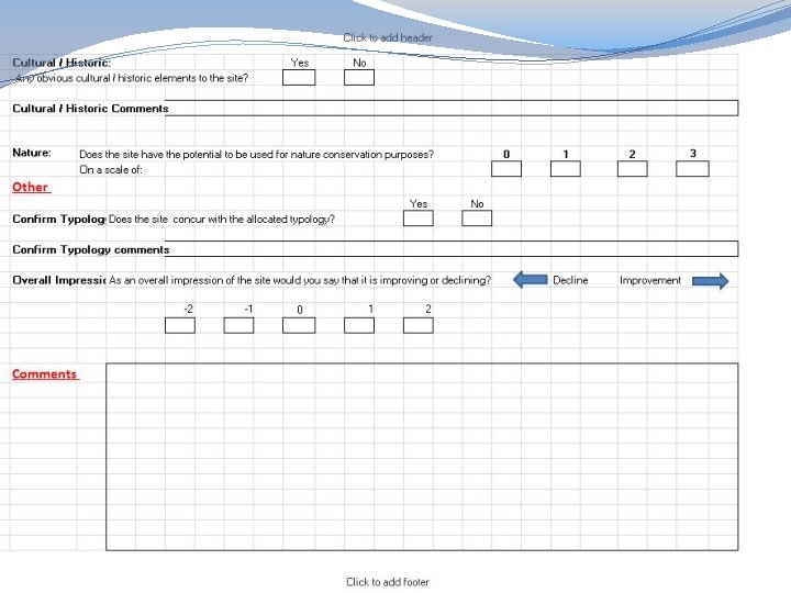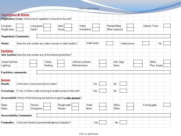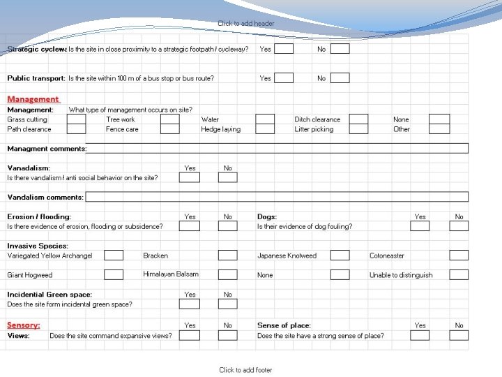 What about the quality of our open spaces? �We used criteria adopted from the Green Flag Award scheme to set the standards for open space quality �We applied the standards to our open spaces to see how they measured up.