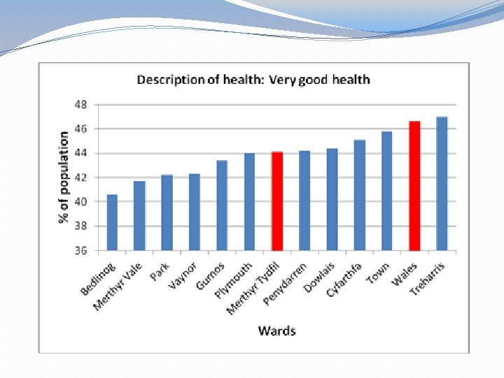 Distribution of natural /semi natural greenspace 8 7 6 5 4 3 2 1 0 Bedlinog Cyfarthfa Dowlais Gurnos Merthyr Vale Park Penydarren Plymouth Town Treharris Vaynor
