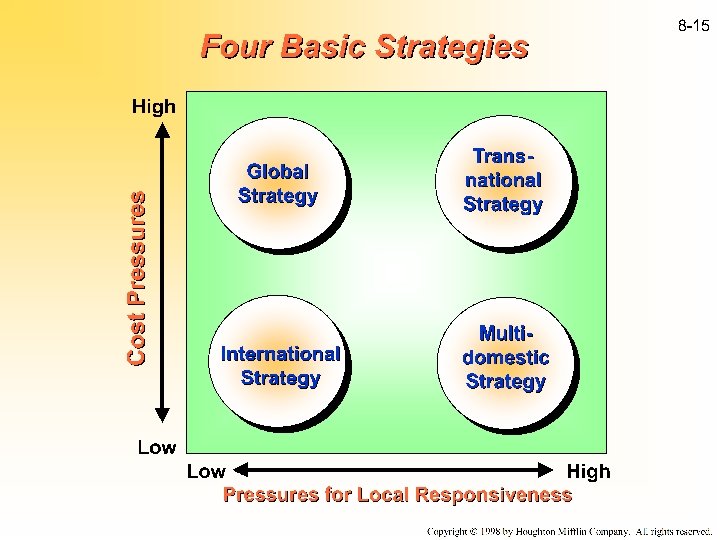 Value of Global Strategies “Stretching” to Develop New Core Competencies E. g. , Pepsi Restaurants trying to develop new skills in upscale casual dining. Managing Corporate Risk As global capital markets become more efficient over time, the benefit provided by this corporate strategy diminishes.