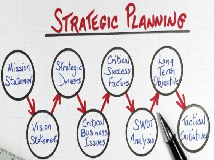 Elements of strategic planning: �Competitive Edge �Vision & Mission statement �Strategists �Long term goals and objectives �Policy �Strategy
