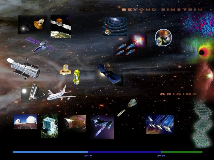Legacy Universe Roadmap (now Universe Division Planning Document) • Congress mandates Agency roadmap every three years • In past, each Theme within the Office of Space Science produced its own roadmap, feeding into higher levels of roadmaps • Last year selected chairs for separate Origins and SEU Roadmaps • With dissolution of individual Themes, Anne Kinney decided to produce single, Universe Roadmap with two co-chairs • Will produce this roadmap in addition to newer Strategic Objective Roadmaps. • Previous roadmaps’ priorities not expected to change in this document. • Vision Missions, Origins Probes, white papers are inputs for farterm mission recommendations