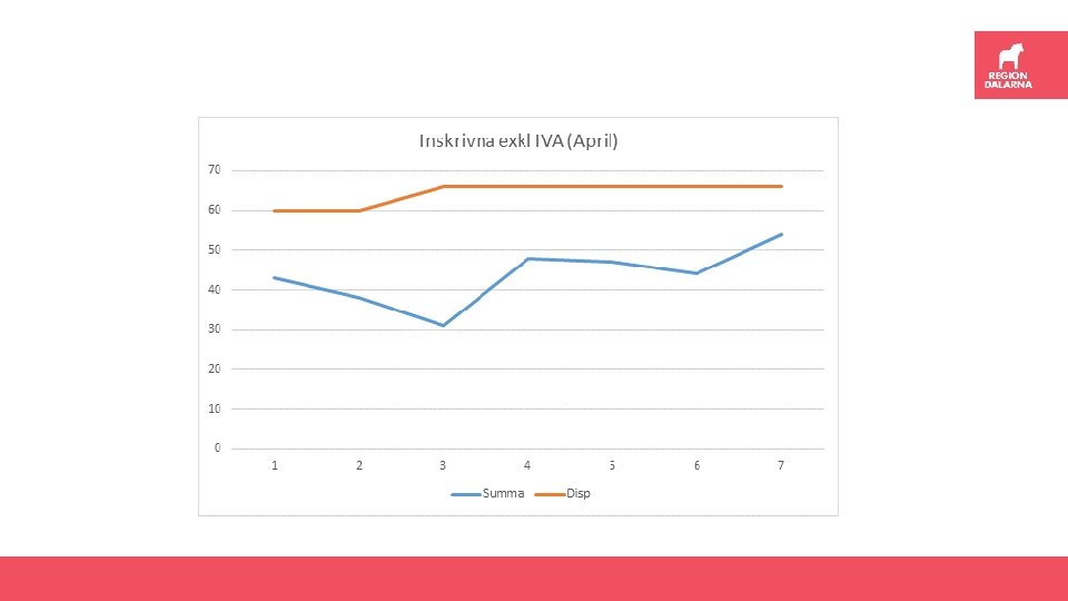 Nuläge (200408) • Den senaste tiden har vi haft en ganska flack kurva med nyinsjuknande i Dalarna • Däremot en påfallande hög andel kritiskt sjuka (IVA-patienter) • RD har i nuläget kapacitet att vårda sjukhuskrävande patienter på separata Covid-vårdavdelningar • Hotande platsbrist på IVA