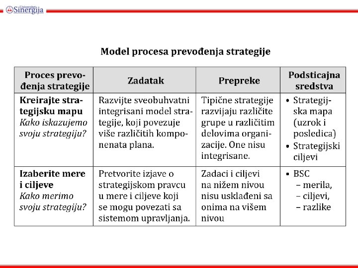 STRATEGIJSKI MENADŽMENT II DEO VII nedelja Strategijska mapa i Balanced Scorecard