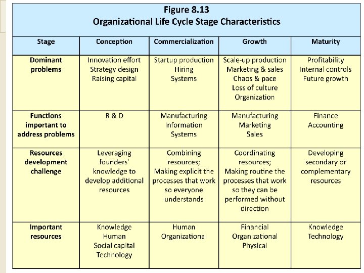 Organizational Life Cycles �Conception – innovation, strategy, finance �Commercialization – production, hiring, and organizational issues �Growth – scaling up, marketing, culture, pace of change and chaos �Maturity – profitability, internal controls