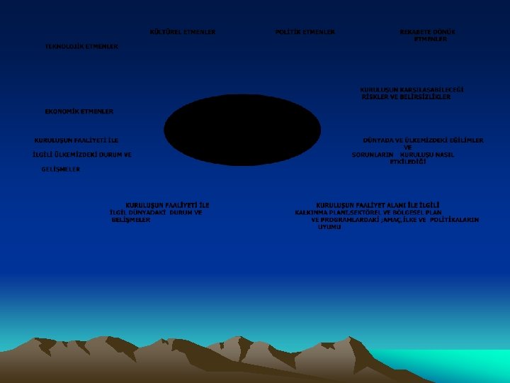 2. Kuruluş Dışı Analiz • Kurumun kontrolü dışındaki koşulların ve eğilimlerin incelenerek fırsat ve tehditlerin belirlenmesi