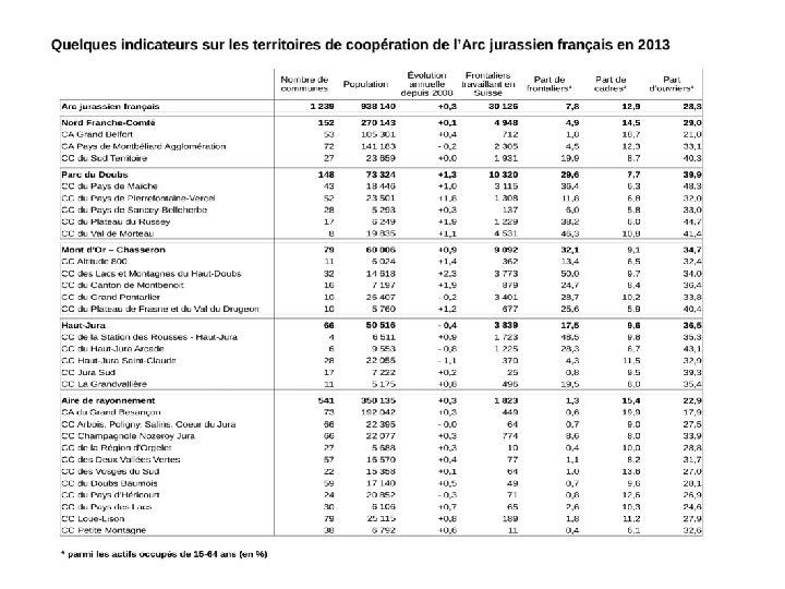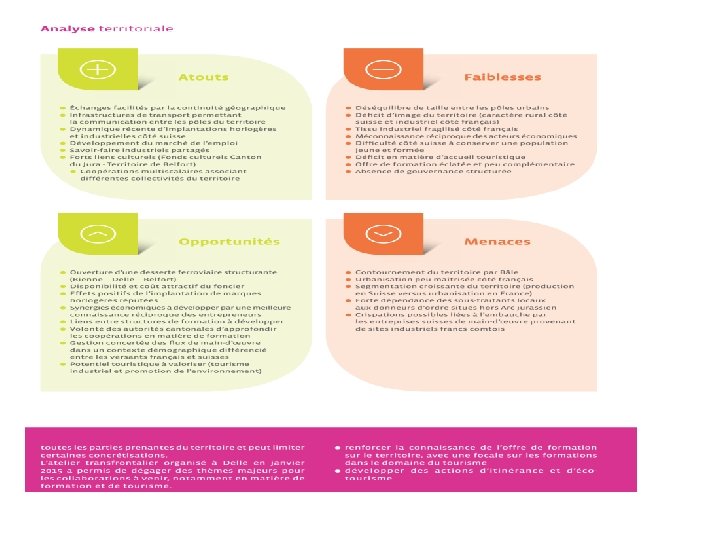 Une gouvernance des coopérations à renouveler Constats : • Nécessité d’une collaboration renforcée de la CTJ avec les territoires de coopération • Des attentes politiques fortes pour une meilleure prise en compte des acteurs locaux • Des projets locaux qui ne bénéficient pas assez d’Interreg V Objectifs : • Une gouvernance locale qui doit se structurer pour faire émerger des projets transfrontaliers • Une concertation côté français via arcjurassien. fr
