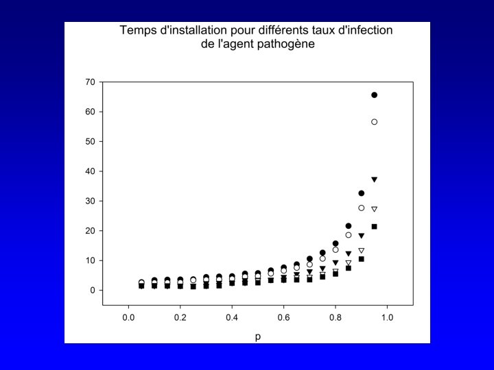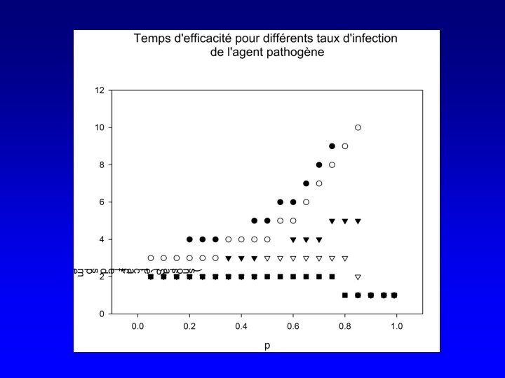 Les paramètres du modèle dans le cas d’une maladie polycyclique • • r : taux de croissance du couvert végétal K : densité maximale du couvert végétal H 0 : densité de semis μ : probabilité de mort par unité de temps de l’agent pathogène • β : taux d’infection de l’agent pathogène • g : nombre de spores produites par infection • p : coefficient de résistance partielle