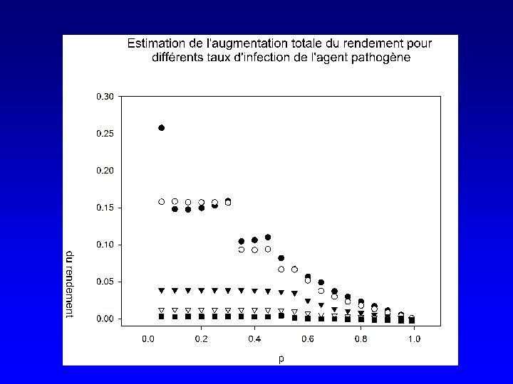 Résultats : trois mesures de la durabilité de la résistance • Temps d’installation de l’agent pathogène • Estimation de l’augmentation du rendement • Temps d’efficacité de la variété résistante MAIS sont-elles identiques ? comparables ? contradictoires ?
