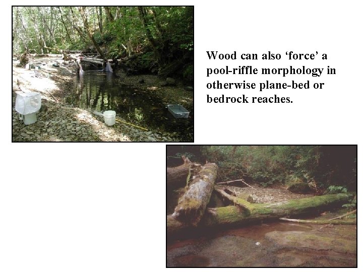 Wood can also ‘force’ a pool-riffle morphology in otherwise plane-bed or bedrock reaches.