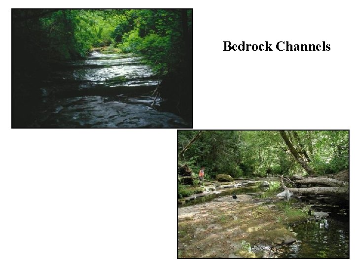 Why are there bedrock channels? Sediment transport exceeds sediment supply Grain size of sediment is small relative to the transport capacity (channel slope * drainage area)