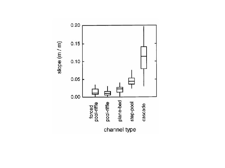 Channel Type -- Colluvial channels (>10%) -- Cascade (7 -10%) -- Step-Pool (3 -7%) -- Plane-Bed (1. 5 -3%) -- Pool-Riffle (<1. 5%)
