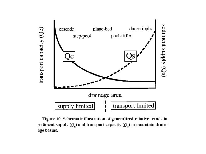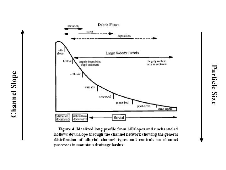 High Transport Capacity colluvial cascade Depositional Reaches step-pool Particle Size channel head Valley Confinement Channel Gradient hillslope plane-bed pool-riffle dune-ripple Montgomery and Buffington, 1997