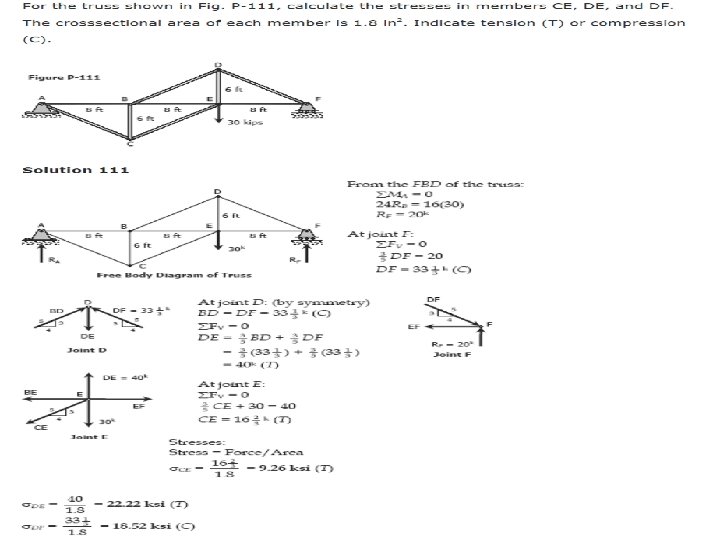 Problem The homogeneous bar shown in Fig. is supported by a smooth pin at C and a cable that runs from A to B around the smooth peg at D. Find the stress in the cable if its diameter is 0. 6 inch and the bar weighs 6000 lb.