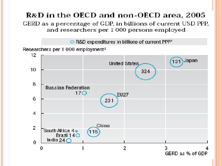 SOME DATA ABOUT S&T (2) Gross Expenditure on R&D (GERD) in Billions US$ (PPP 2005) and average annual growth 1995 -2005: EU 27 231 B$, + 3% OECD 772 B$, + 3. 5% Russian Fed. 16. 7 B$, + 6% Italy 17. 7 B$, + 2. 5% Slovenia 0. 55 B$, - 3% (2000 -2005), growing now