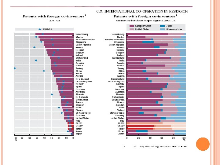 PATENTS (3) BUT Weakness of Russia for registering international patents, notably the triadic patents, about 5% of the total (EU 27 shares 28% of the total) These international patents are generally with foreign co-inventors and Russia has the highest share (64%) of foreign ownership of domestic inventions filed internationally