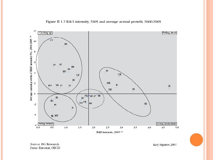 SOME DATA ABOUT S&T (6) In terms of researchers in the total workforce: Russia has to be considered as “overstaffed” according to world standards but the current attrition of the R&D workforce will bring it back to the general trend experienced elsewhere Slovenia with 6. 5 Researchers (FTE) per 1000 total employment for a R&D intensity of 1. 50 is in excess of the EU average and slightly above this general trend