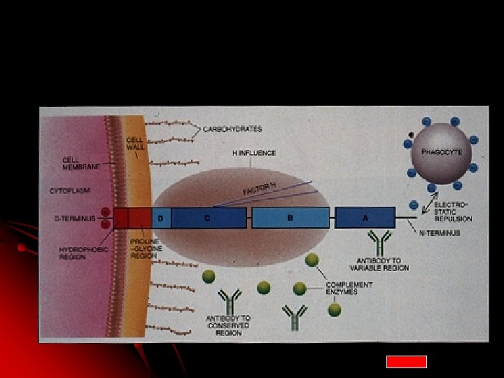 Proteína M Antígeno de Superficie 60 nm Clase I y Clase II p. H 7. 4 – 6. 5 Serotipos (+80) Principal factor de virulencia Adesina Se une al Ig. M Ig. G y a-macroglobulina Se ha considerado rheumatogenico Regulador de distribucion y de actividad de muchas Citocinas TNFa TGFB IL-1 IL-6 Se une al factor H del complemento Pueden ser fagocitadas y vivir dentro del macrófago