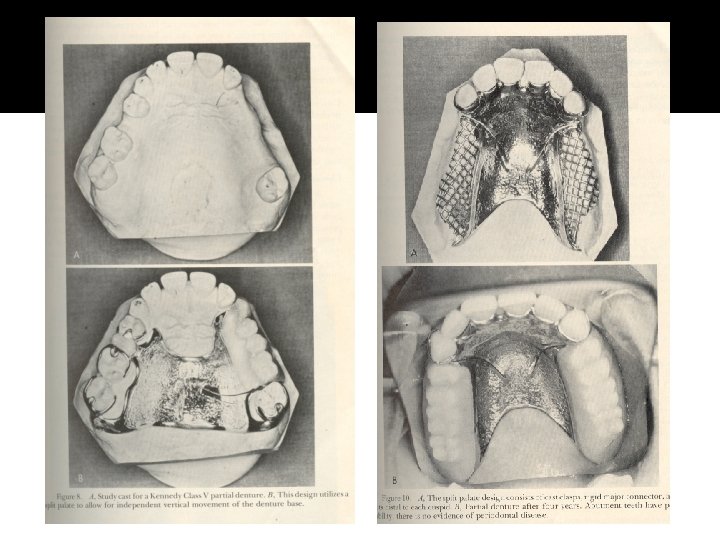 Split palate stress breaker A stress breaker for a maxillary partial denture is often not necessary, has there is more alveolar ridge for support. In case of Kennedy class V, partial denture may be difficult to design, as the placement of a rest on the weak lateral incisor is not considered desirable. The left second molar would be required to absorb most of the load of mastication on the left side. In such cases a split palate stress breaker was designed.