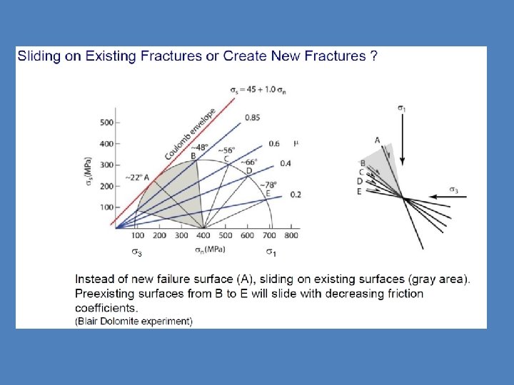 σS elo v n E e r u il pe σ c an t ( = ta +σ 0 pe o l ve σc =( n E ing lid S al n a b. F m lo Φ )σ N σN f) Φ n F Cou tio ric NO new fracture will form 2θ 2 2θ 1 σN Movement happens on any pre-existing fracture with pole making any angle between θ 1 and θ 2 with σ1 direction