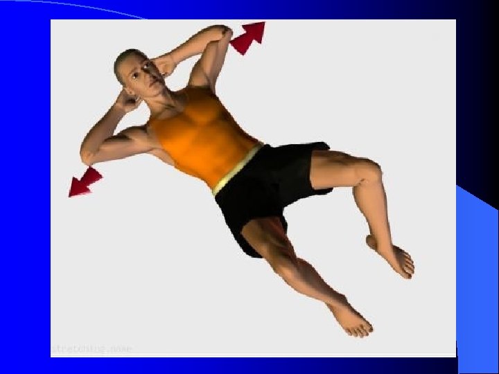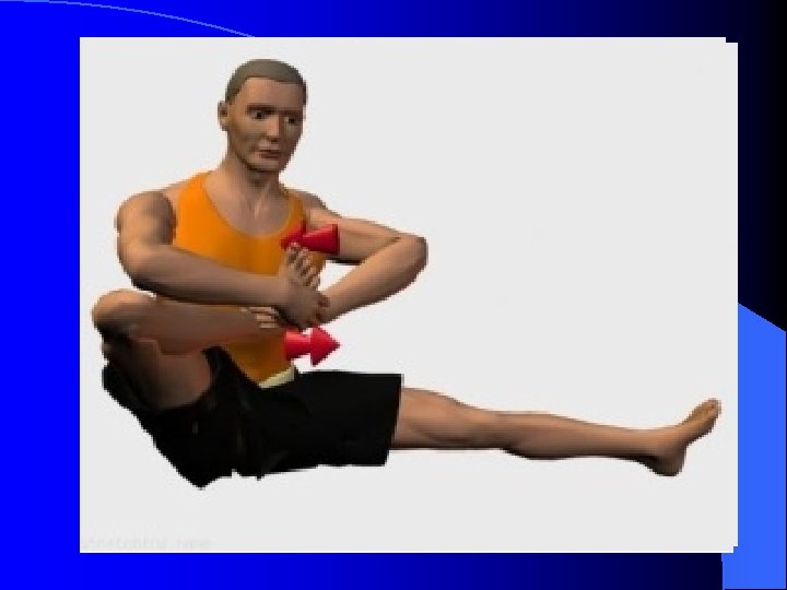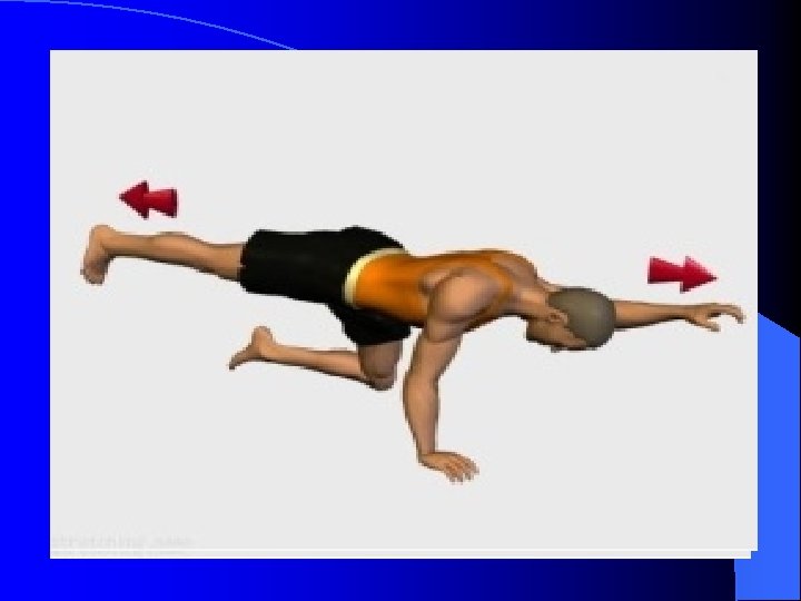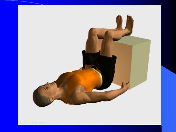 Kiedy? Jaki? l Stretching na koniec zajęć Powinien angażować te mięśnie, ścięgna, stawy, które pracowały podczas zajęć. Rozpoczynamy od tych mięśni, które są mniejsze, ponieważ szybciej tracą ciepło. Stretching na koniec zajęć to stretching statyczny. Pozycje przytrzymujemy dłużej (20 -30 sekund) i powtarzamy od 3 do 5 razy. Stretching po zajęciach spełnia funkcję relaksacyjną, przyśpiesza regenerację oraz zmniejsza napięcie mięśniowe powstałe podczas treningu.