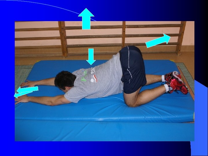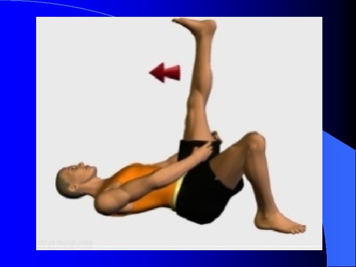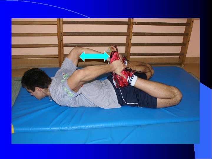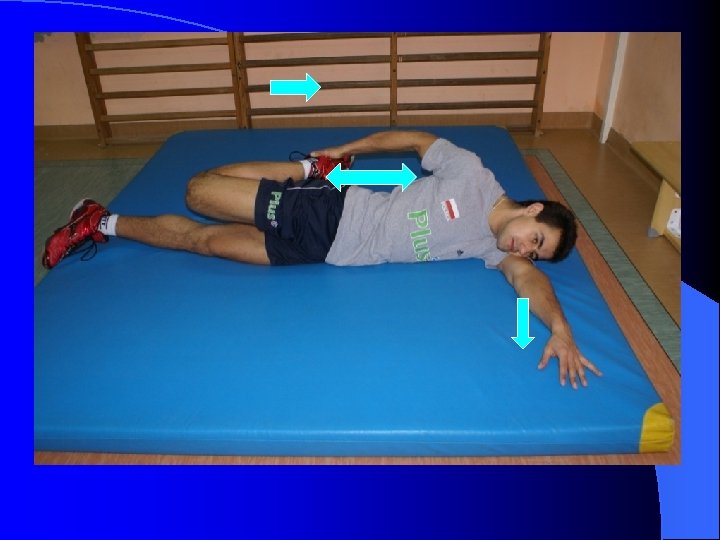 l Leżąc przodem (na brzuchu), ugnij jedną nogę i bokiem połóż obok tułowia