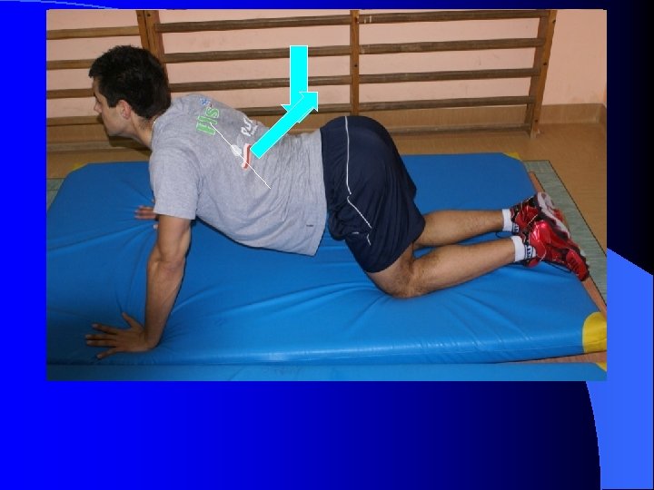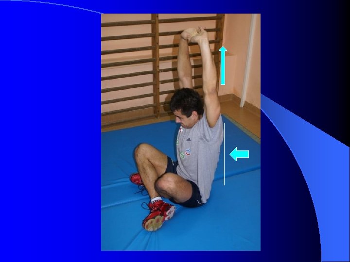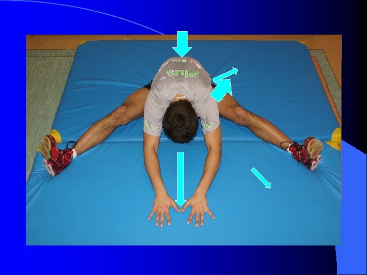 l w siadzie skłon tułowia – staramy się dotknąć palcami jak najdalszą część piszczeli, lub stóp