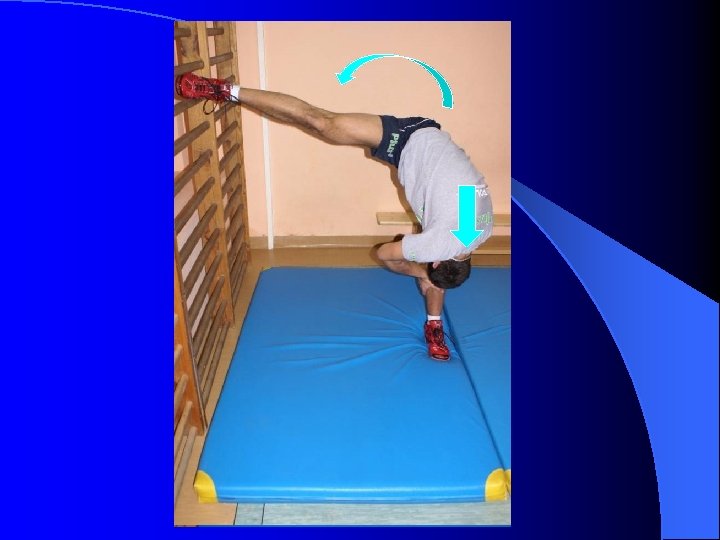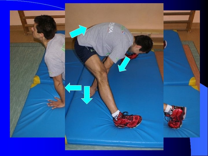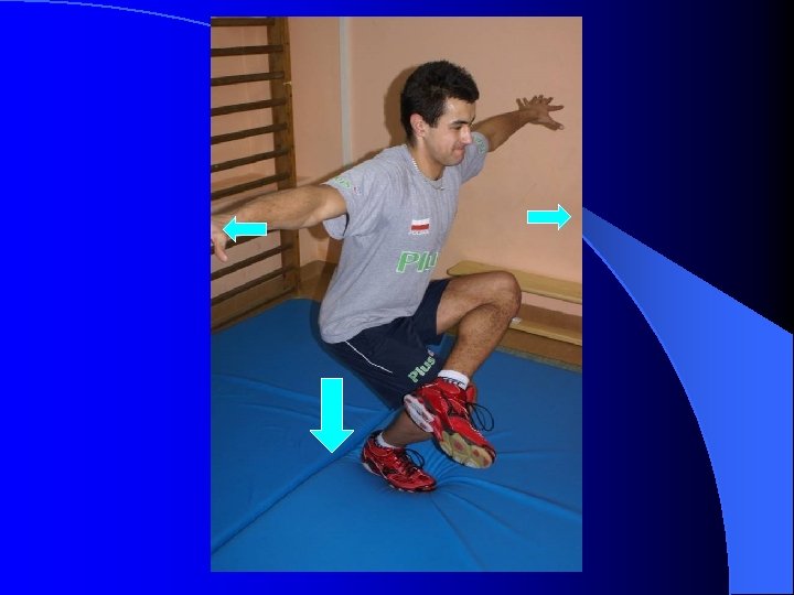 l W siadzie rozkrocznym ugnij kolana i pochyl wyprostowany tułów do przodu