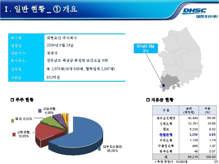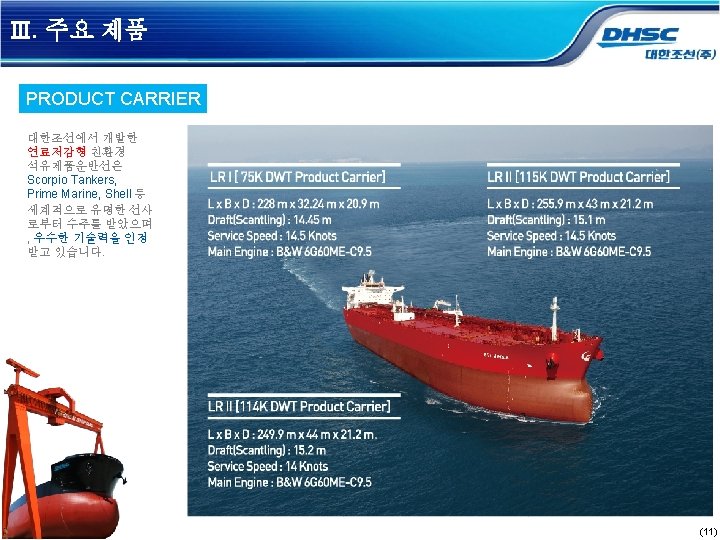 Strictly Private Confidential 2020 07 0 SEOUL SHARE Slides: 18 Download presentation Strictly Private & Confidential 대한조선 회사 소개 2020. 07 (0) SEOUL SHARE HOLDERS Contents OKPO HAENAM Ⅰ. 일반 현황 Ⅱ. 대한조선 경쟁력 Ⅲ. 주요 제품 (1) Ⅲ. 주요 제품 LNG Bunkering Vessel 제품 개발 中 (16)