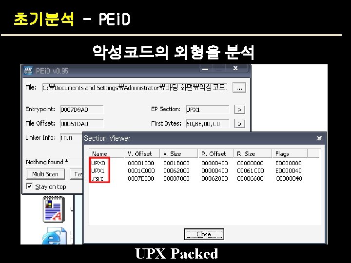 Unpacking – using unpacker upx –d packed파일 –o목적파일