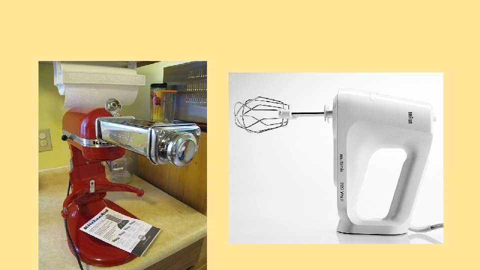Jedno a víceúčelové strojky Jednoúčelové - provádí jednu operaci s vysokým výkonem Víceúčelové - universální, s nižším výkonem Řadíme zde: • Stroje na mixování pokrmů a potravin - ruční, stolní, mobilní (turbo) mixéry • Odšťavňovače, lisy na citrusy – ruční, elektrické • Mlýnky na kávu • Kráječe chleba • Kombinované stroje – např. na strouhání sýra a mlýnek na maso