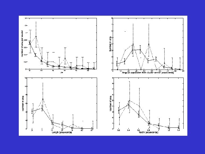 P~ns. D lensing prob. lens density lensing cross section distance to source ~p E 2 Dol 2 Galaxies: Clusters: 0. 5 x 10 -2 Mpc-3 x p (5 kpc)2 10 -7 Mpc-3 x p (100 kpc)2 x x 2 Gpc ~ 10 -3 ~ 10 -5 × B --- magnification bias: ~10 for bright quasar samples ~few for radio samples