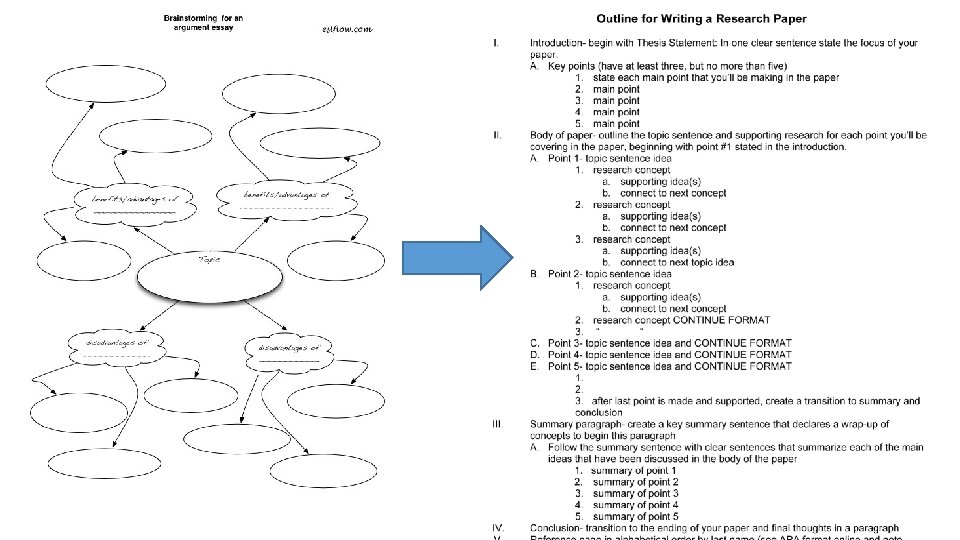 Basic Steps 1. 2. 3. 4. 5. 6. 7. 8. Read, read Taking notes Organize notes with readings-> come up with different arguing pts Come up with thesis Outline Detail each paragraph THEN START WRITING- body first Thesis and conclusion- write last after the body